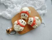 包了豆沙馅,围巾用的玫瑰花瓣粉,眼睛鼻子用的可可粉,爪子贴了几粒黑芝麻,嘿嘿