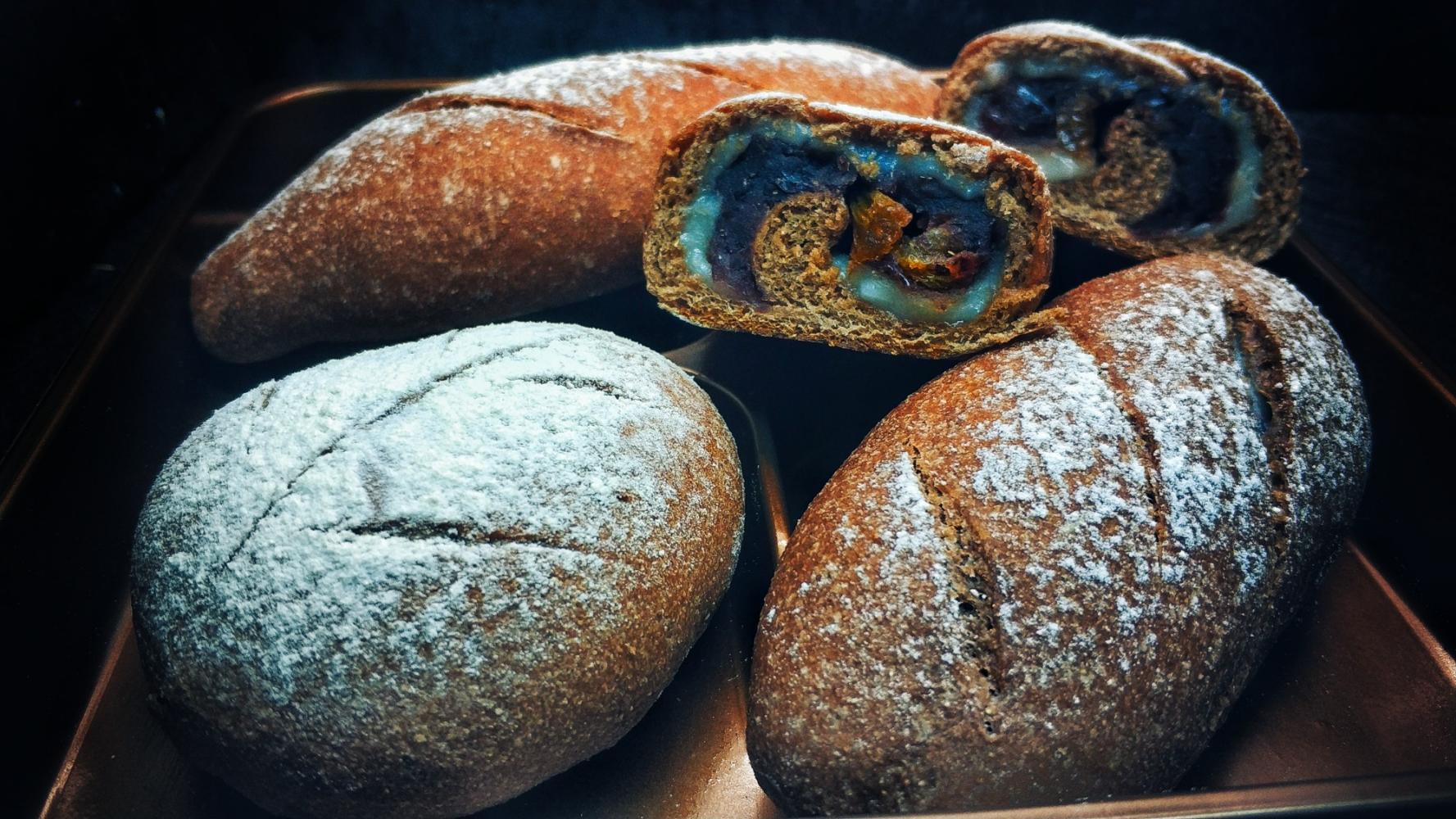 全麦粉 鸡蛋 糖 盐 可可粉或紫薯粉或抹茶粉 水 酵母 黄油