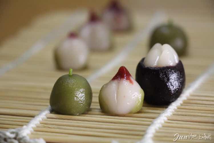自己的菜谱不能上作品 寿桃 一款造型20个 时:1小时 备白、红、绿三色面团20分钟 捏塑10分钟 蒸6m 钱:牙签等工具¥5 糯米粉¥2小麦淀粉¥1 红曲麦青粉¥2 ———————— 我想用中国原料、中国工艺做点心,个头要小, 模样要美,味道甜咸皆可口。