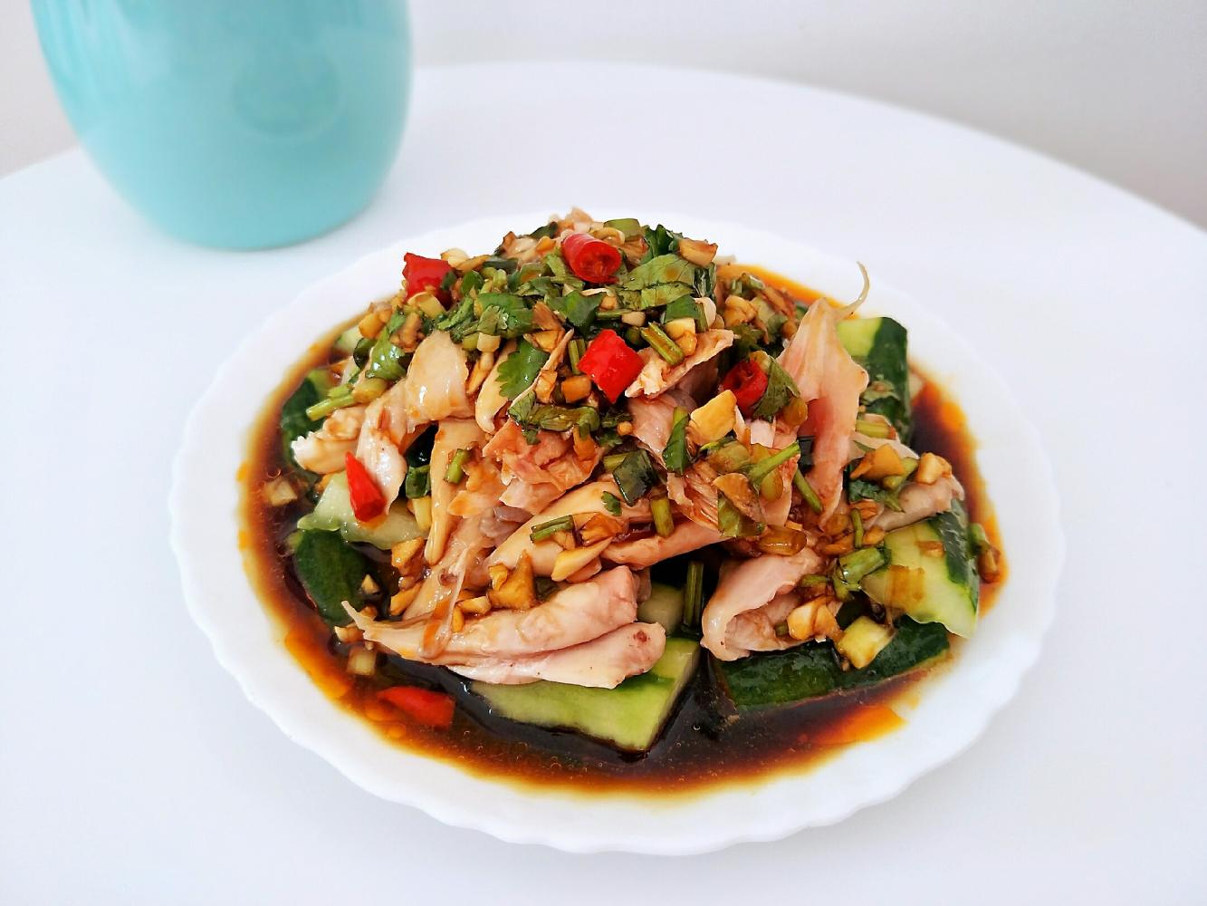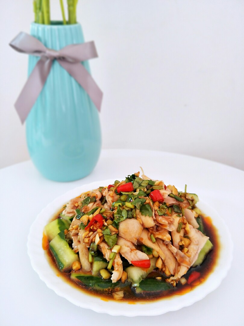 辣辣的嫩嫩的鸡肉,配上脆脆的青瓜,这口水鸡完美