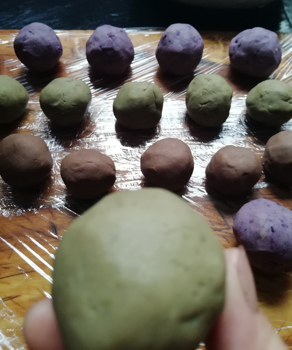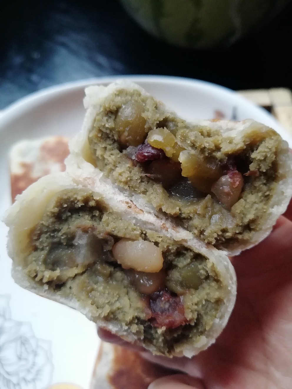 水饴(饼皮) 植物油(饼皮) 全蛋液(饼皮) 低筋面粉(饼皮) 炼乳(饼皮) 脱皮绿豆(豆馅儿) 糖粉(豆馅儿) 淡奶油(豆馅儿) 奶粉(豆馅儿) 盐(豆馅儿) 黄油(豆馅儿) 奶油奶酪(麻薯) 糖粉(麻薯) 糯米粉(麻薯) 牛奶(麻薯)