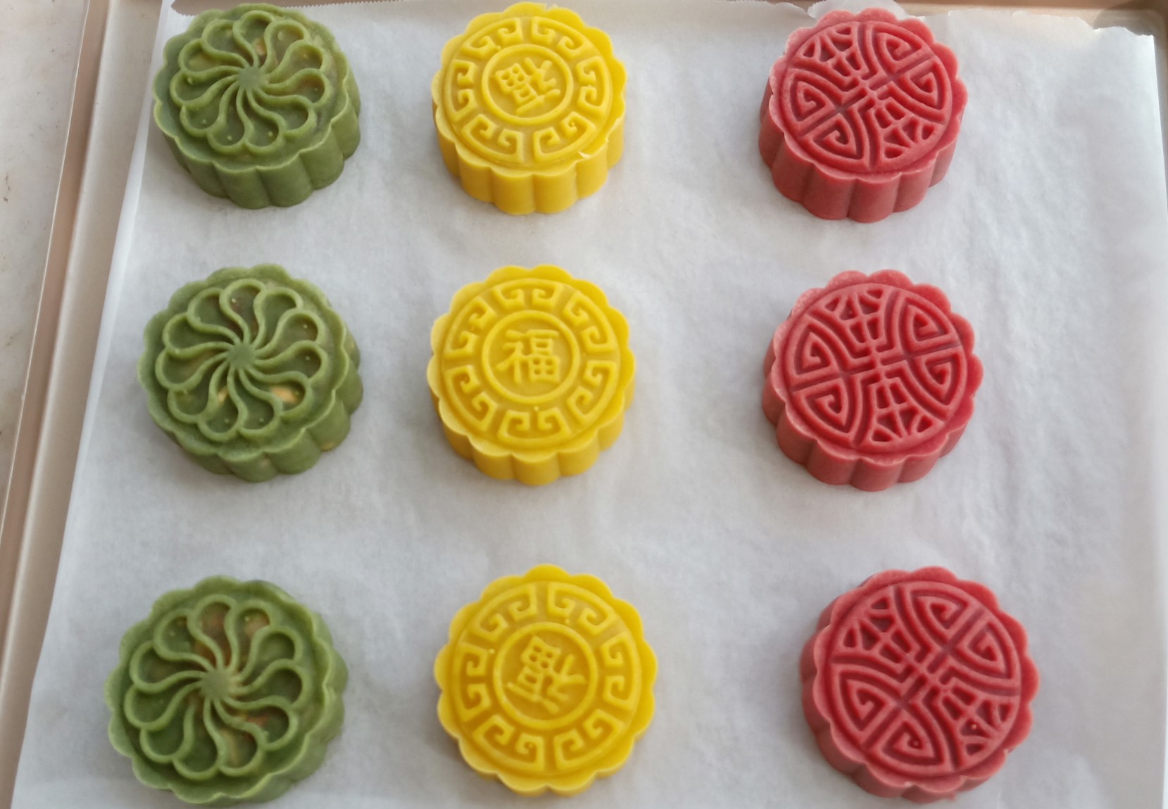 第一次做桃山皮月饼,五颜六色的真好看。感谢僖儿老师的分享
