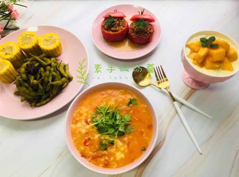 ❥⇢Good morning…… 无论生活给予了你多少考验,世人对你有多少误解,都没关系,做好自己才是最重要的。花若盛开,蝴蝶自来!人生最难能可贵的是看透一切后还能每天保持着激情,去创造你存在的价值。早安[太阳] 早餐:西红柿酿肉 西红柿疙瘩汤 玉米 毛豆 芒果酸奶 西红柿酿肉制作 西红柿2个 洋葱20克 肉沫100克 酱油 盐 料酒 五香粉 油 西红柿内的柿子肉挖出 炒锅加油 爆香洋葱 加肉末翻炒 加挖出西红柿肉