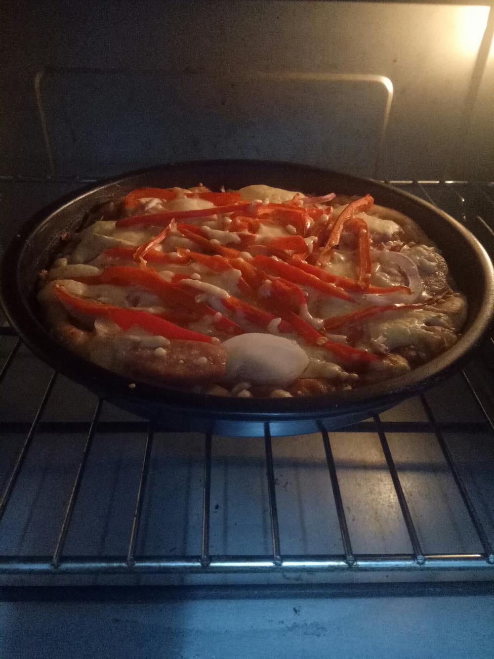 没有青椒用红辣椒代替,里面放的自制的脆皮肠,很香很香,不知道好吃不!