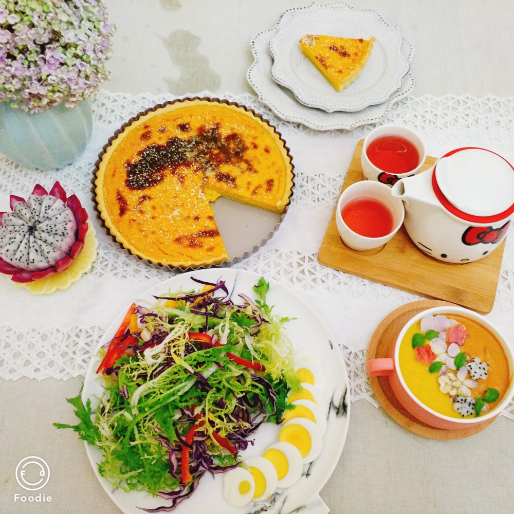 南瓜宴,南瓜派,南瓜双色糊,水果茶!早晨太匆忙,来不及细细摆拍[捂脸]