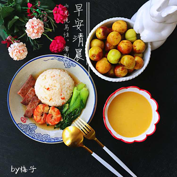 大至梦想,小到心愿 无论前路怎样,初心不忘~~ 早安[调皮]小美主锅玉米汁,网锅米饭,蒸锅芋头[偷笑]忘了拍照向日葵馒头,出锅后再来个虾仁油菜,低温炒制无油烟更健康给少爷加了几块牛排保证上学一天的能量[拳头]早起10圈完成✅开启工作模式~~~