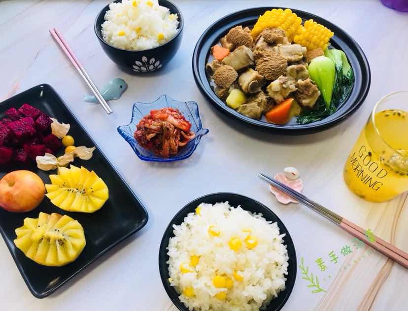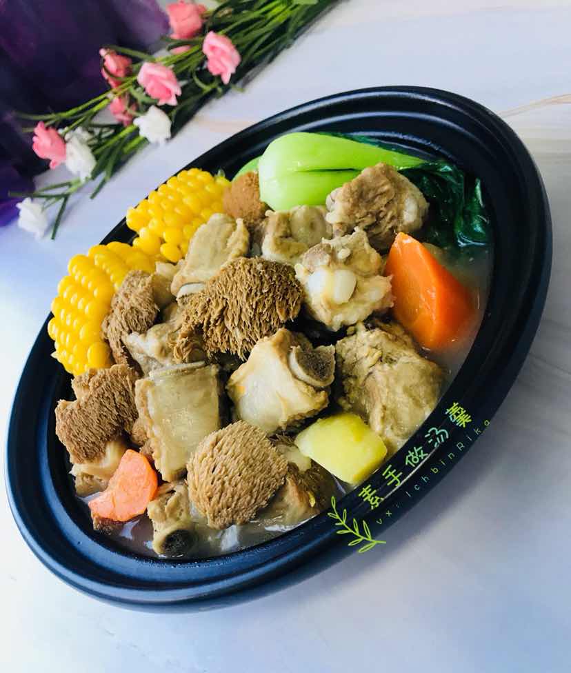 ❥⇢Good morning…… 猴头菇:又叫猴头菌,只因外形酷似猴头而得名。猴蘑,猴头,猴菇,是中国传统的名贵菜肴,肉嫩、味香、鲜美可口。是四大名菜(猴头、熊掌、燕窝、鱼翅)之一。有“山珍猴头、海味鱼翅”之称。 周二早餐约饭菌类:猴头菇炖排骨 辣白菜 玉米饭 百香果饮 水果拼盘 制作方法: 1.泡发清洗猴头; 2.处理排骨; 3.辅料