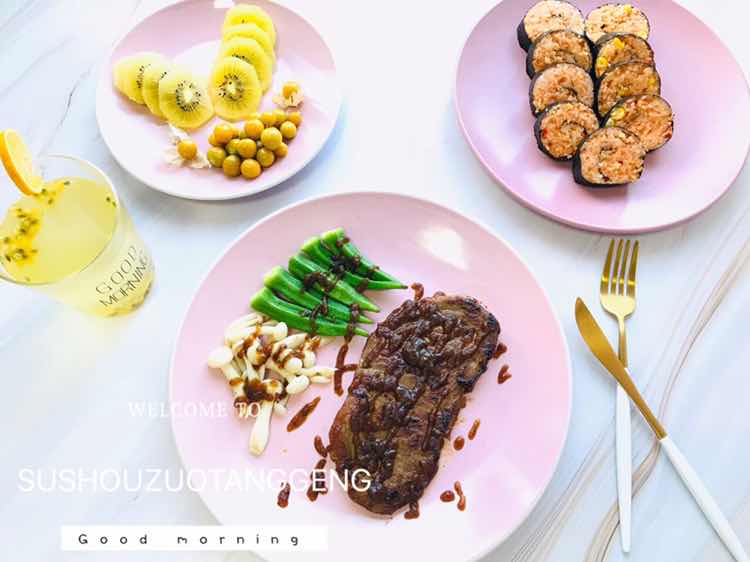 Good morning 生命的奖赏远在旅途终点,而非起点附近。我不知道要走多少步才能达到目标,踏上第一千步的时候,仍然可能遭到失败。但我不会因此放弃,我会坚持不懈,直至成功! 周六早餐:辣白菜寿司 牛排 猕猴桃 菇娘 蜂蜜百香果