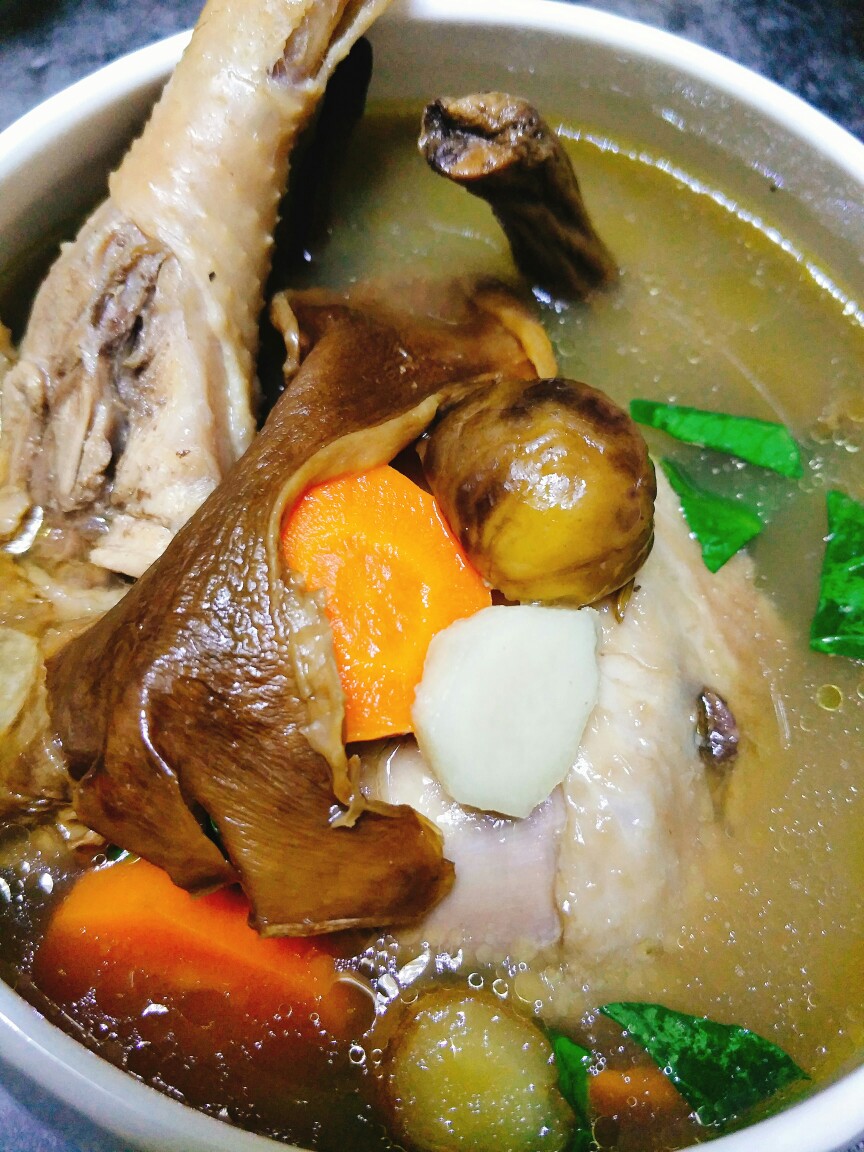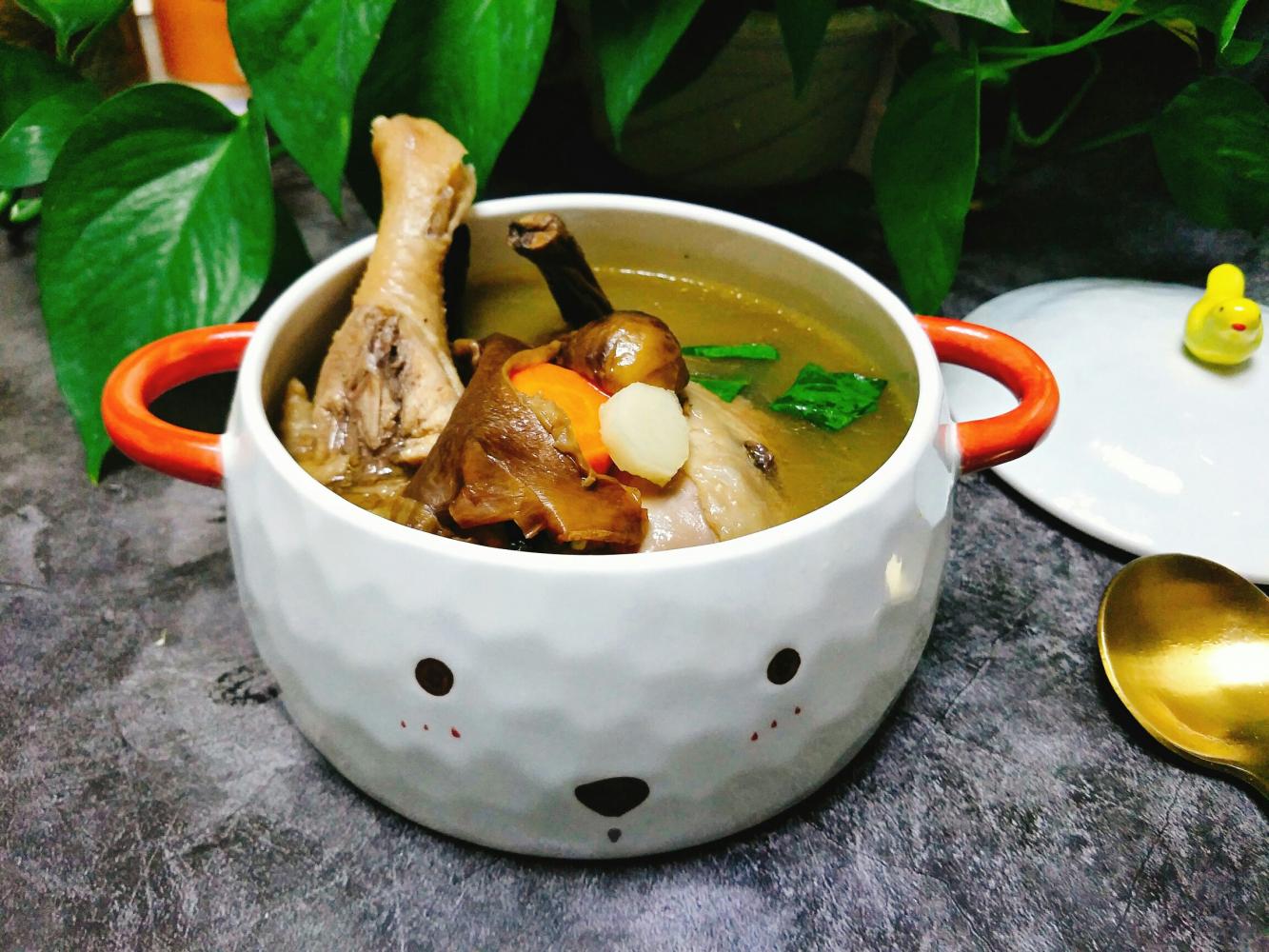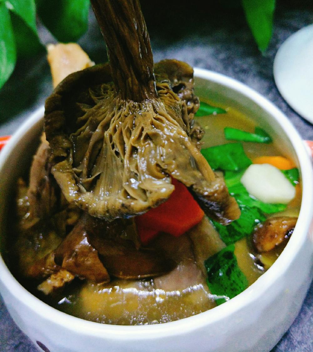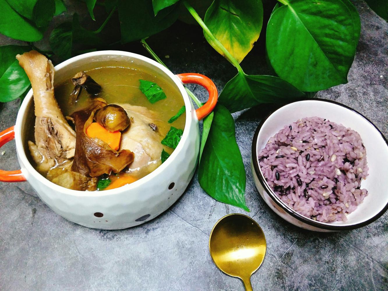 鸡腿山药萝卜野生菌汤、杂粮饭