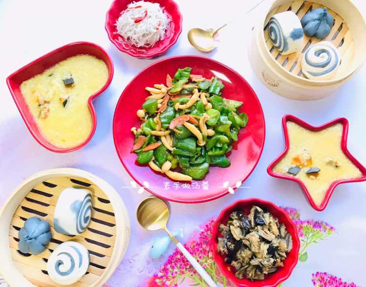 ✿Good morning 从容达观一些,轻松自在一些,豁达随意一些。凡事当有度,做人应知足! 周二约饭馒头: 云朵馒头 素炒杂蔬 南瓜小米粥 小咸菜