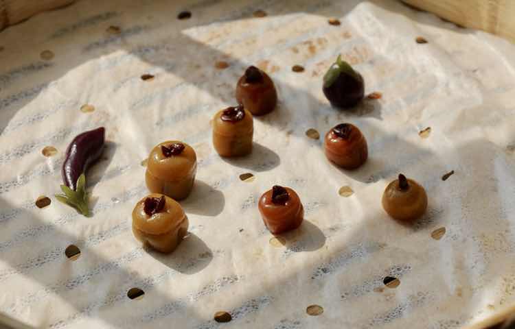 象形点心(三)柿子•糯米团子柿子皮 黄色面团(一) 糯米粉 小麦淀粉 80度开水 南瓜粉 红色面团(二) 糯米粉 小麦淀粉 80度开水 红曲粉 可可面团(柿蒂) 糯米粉 小麦淀粉 80度开水 可可粉1人做过