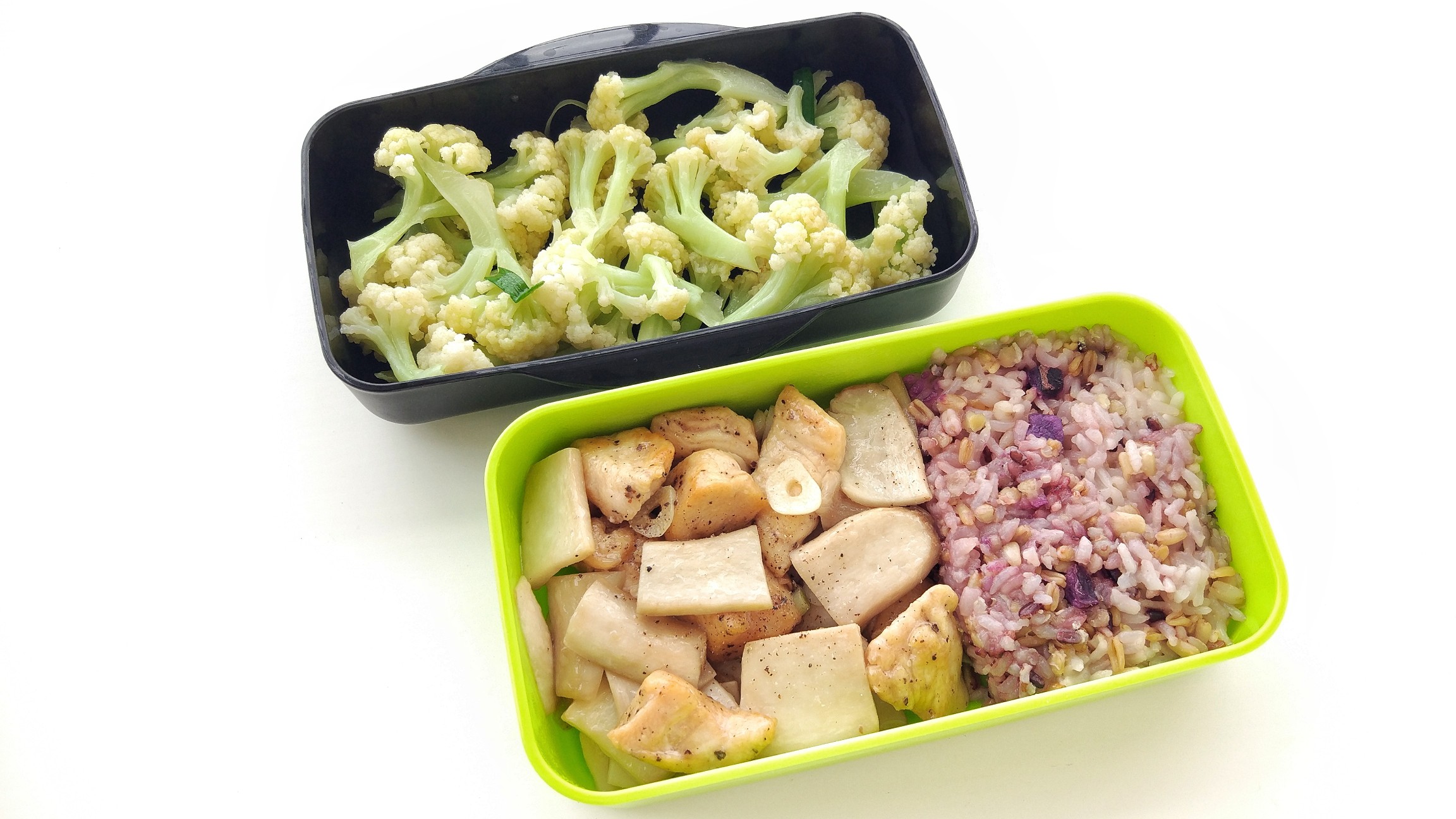 杂粮饭+杏鲍菇炒鸡胸肉+菜花