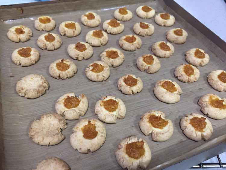 玛格丽特饼干,需要花点小心思。先把鸡蛋煮熟,取出成熟的蛋黄,拈碎过筛,再混到面团里才能烤制。家里有自制的多余的凤梨馅,就在上面放了一些,口感更丰富
