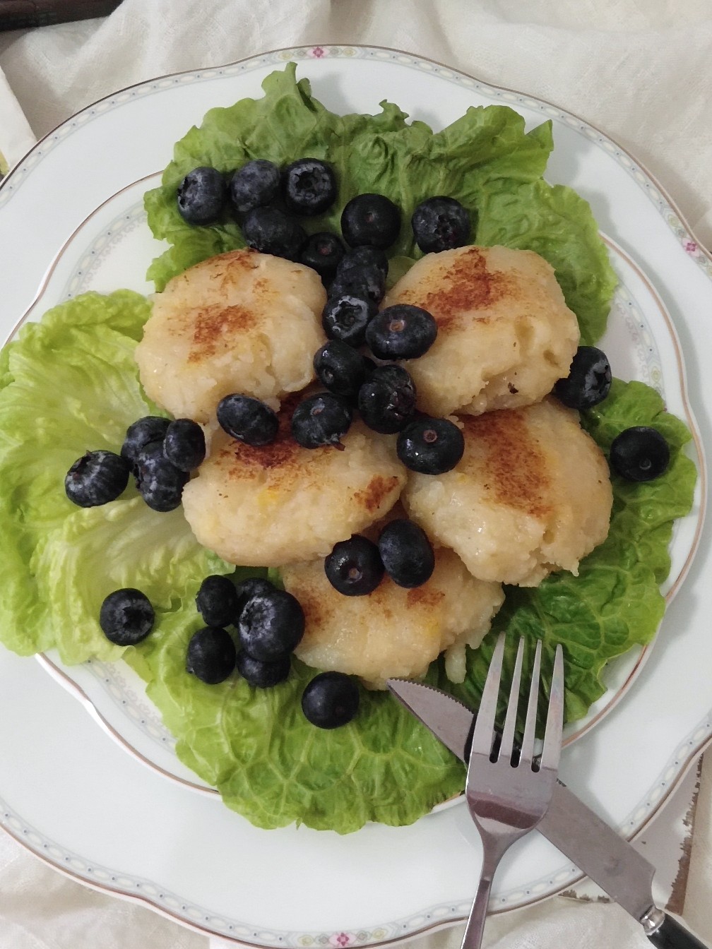 今日早餐:芝士土豆饼,蓝莓,咖啡