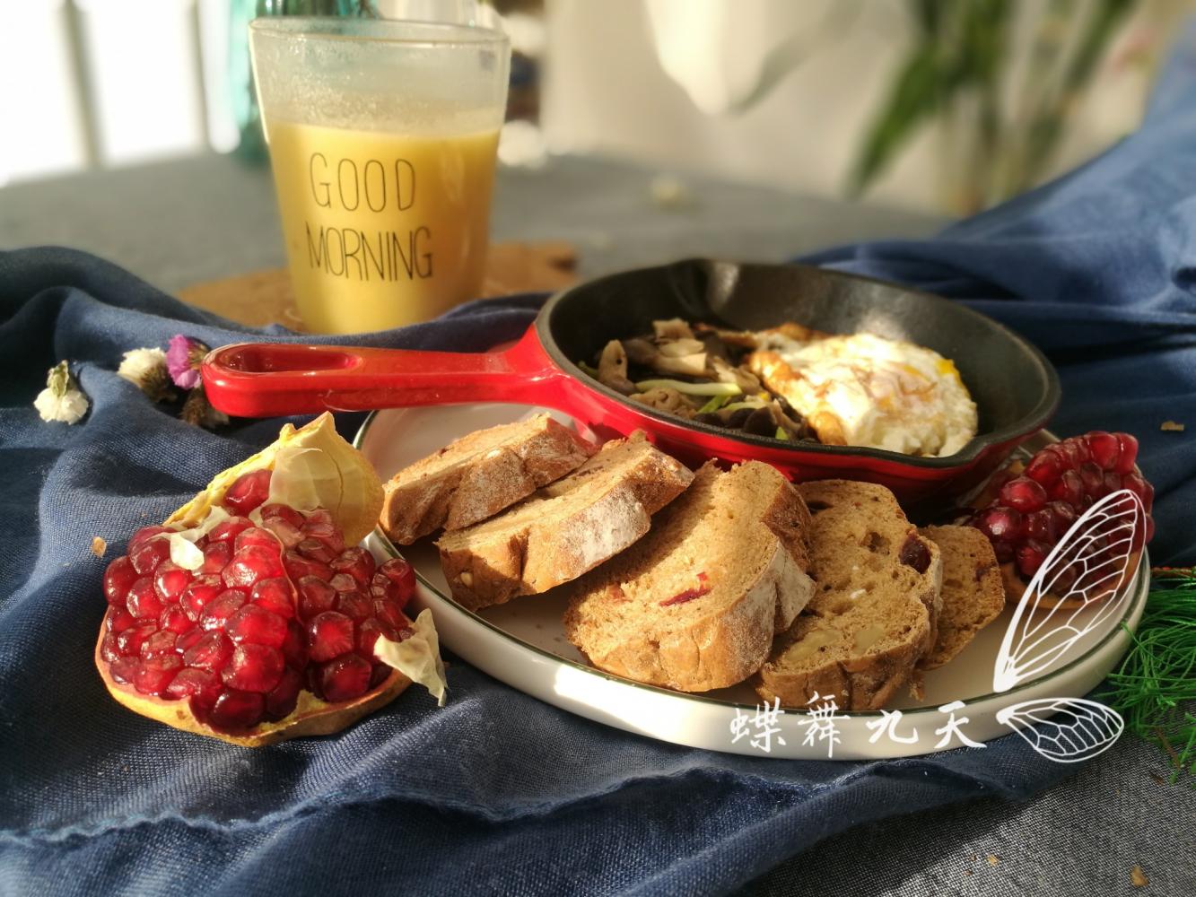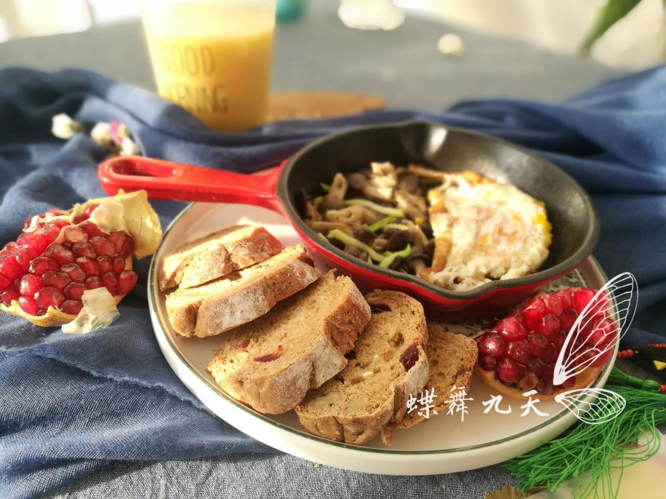 红糖核桃软欧包煎蛋一点点菜,胡萝卜米糊加上一点可以吃的雅诗兰黛。