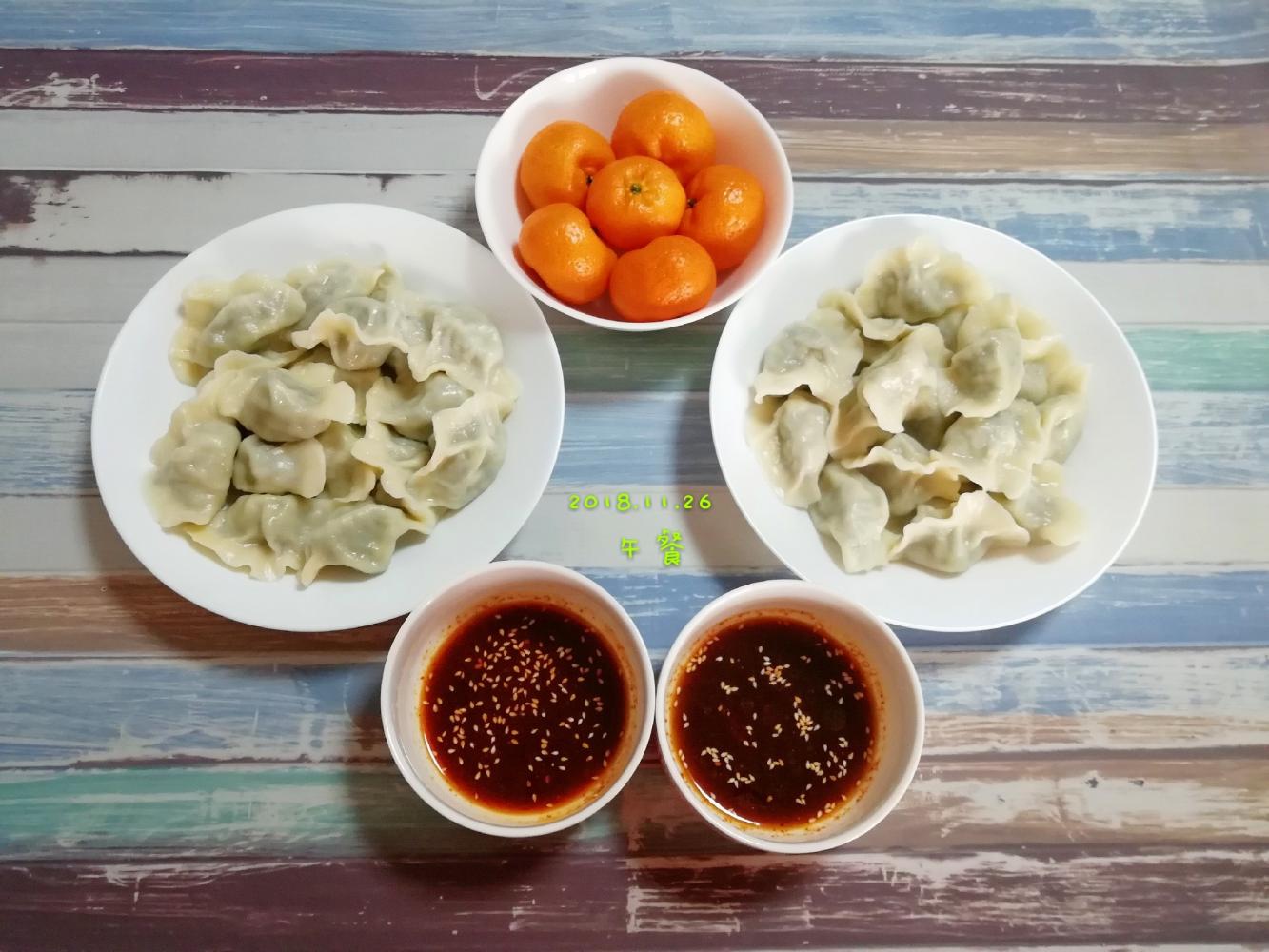 荠菜大肉馅饺子+蜜桔