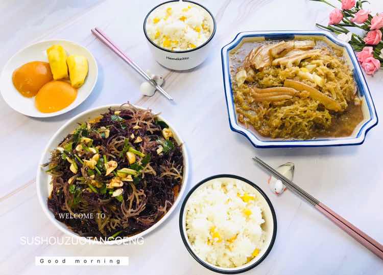 早安┈ꫛꫀꪝ┈┈ 只有对等的投资,才能有对等的收获。认识一个人,推开一扇门,认识一群人,就会遇见一个精彩的世界。 早餐:五花肉酸菜 凉拌海草 二米饭 桃子 菠萝蜜