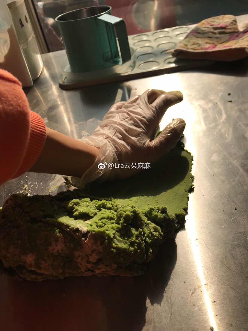 图一不是抹茶面糊,猜猜吧? 图二是我惯用的挤花曲奇的手法,手掌根部用力搓,配合刮板来回。 曲奇➕奥利奥雪花酥❄➕草莓雪花酥❄ 时间紧迫,平安夜圣诞节就那么过了
