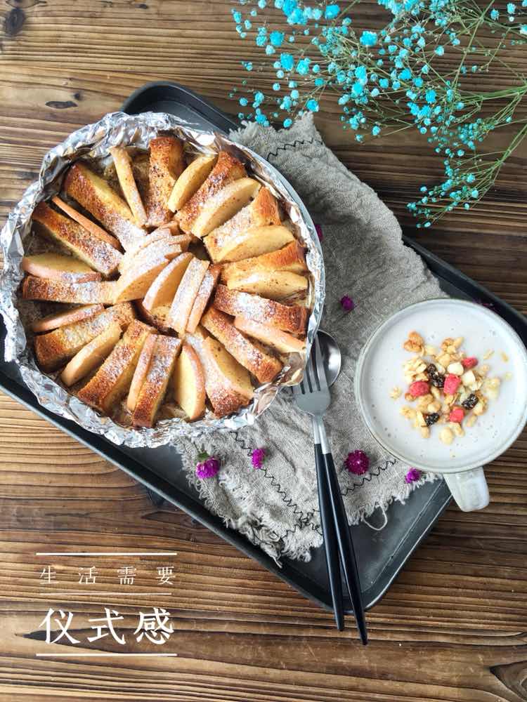 芋泥牛奶+苹果肉桂吐司布丁