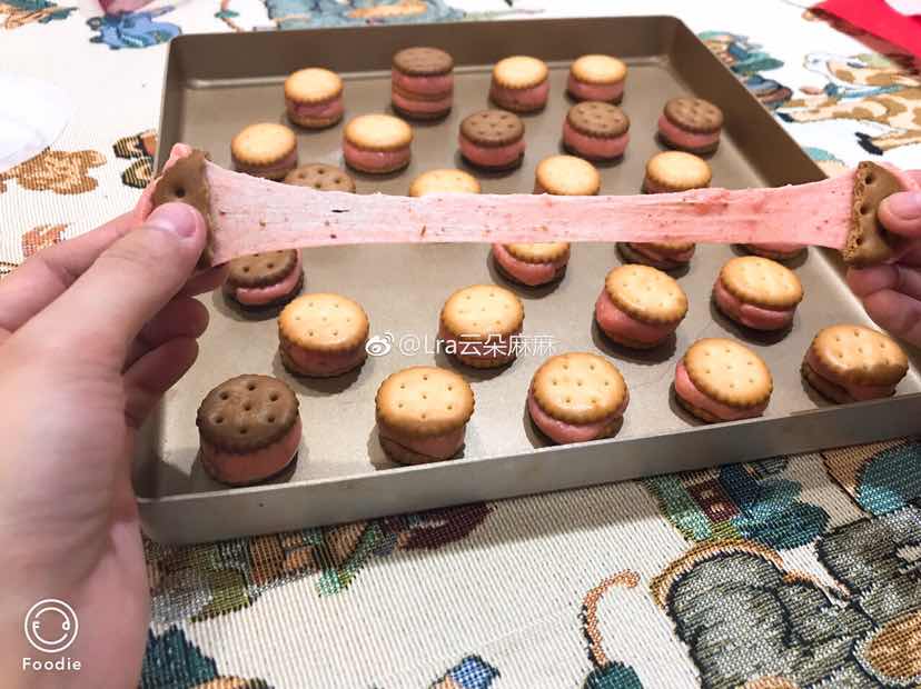 奶香➕黑糖饼干夹心的草莓棉花糖牛轧饼[胜利][胜利]