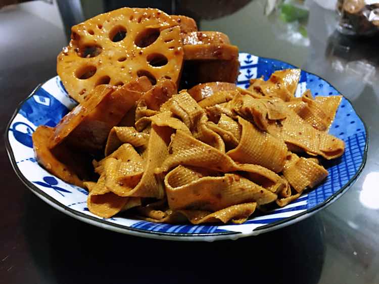 熏鲅鱼,麻辣鸭头,麻辣腐皮、藕片