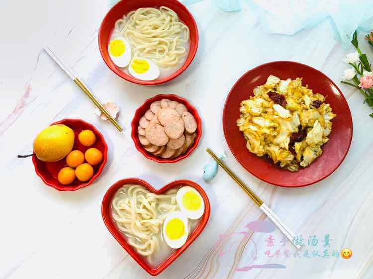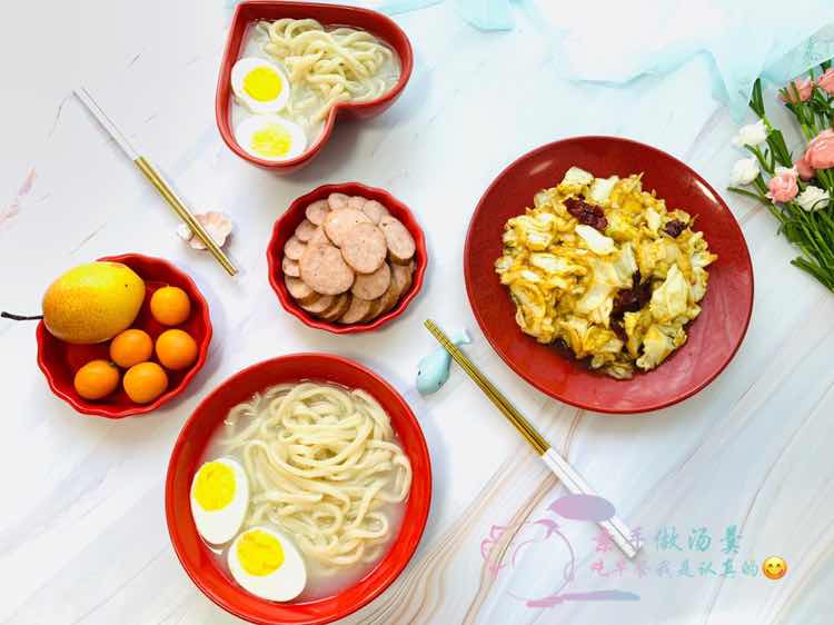 早安 生活中本就充满了失望 不是所有的等待都能如愿以偿,你且笑对,不必慌张。 早餐:辣爆卷心菜 清水手擀面 蒜香香肠 梨 金桔
