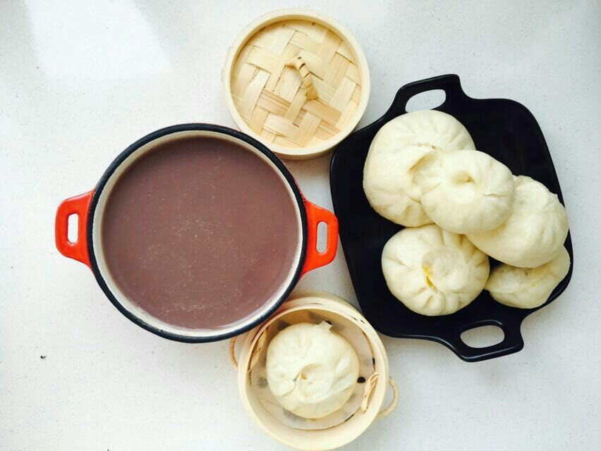 胡萝卜木耳鸡蛋包子,红豆浆。