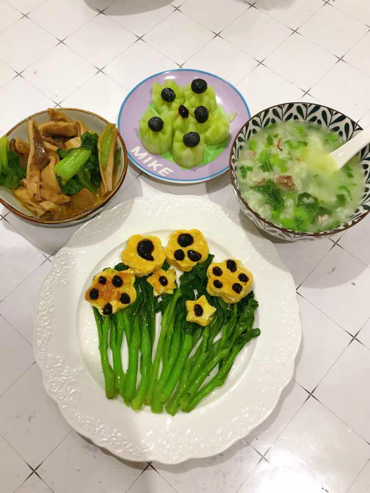 青菜肉粥,青菜肚丝,青菜鸡蛋