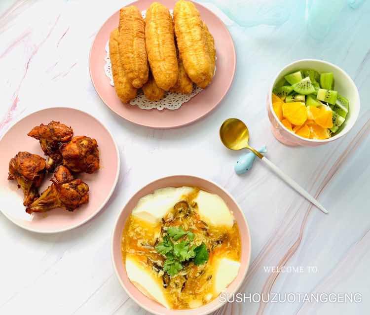 周末早安 每天醒来,告诉自己:微笑才会美! 早午餐:全麦油条 自制豆腐脑 香烤阿根廷风味鸡翅根