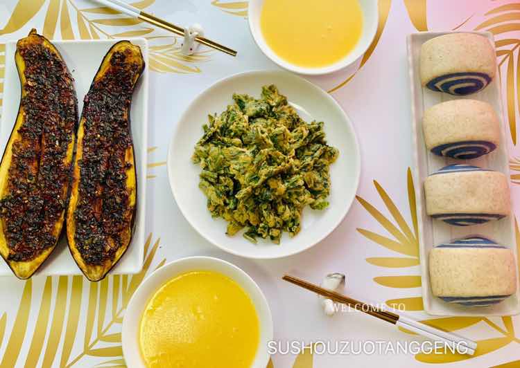 早上好 用行动开启美好,用智慧点亮人生;用努力打造精彩,用奋斗创造辉煌; 早午餐:香椿炒蛋 烤茄子 玉米粥 全麦馒头