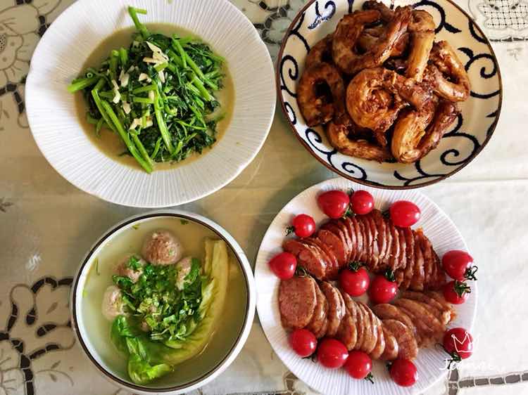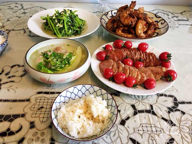 三菜一汤,午餐可以多吃点,晚餐就要少吃一点了,为了身体健康哦!