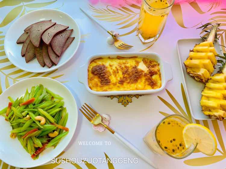 早 祝福送给你,祝你一天工作顺心;愿望送给你,愿你永远幸福又温馨; 早 餐:焗红薯 素炒西芹 卤猪肝 菠萝船 百香果饮