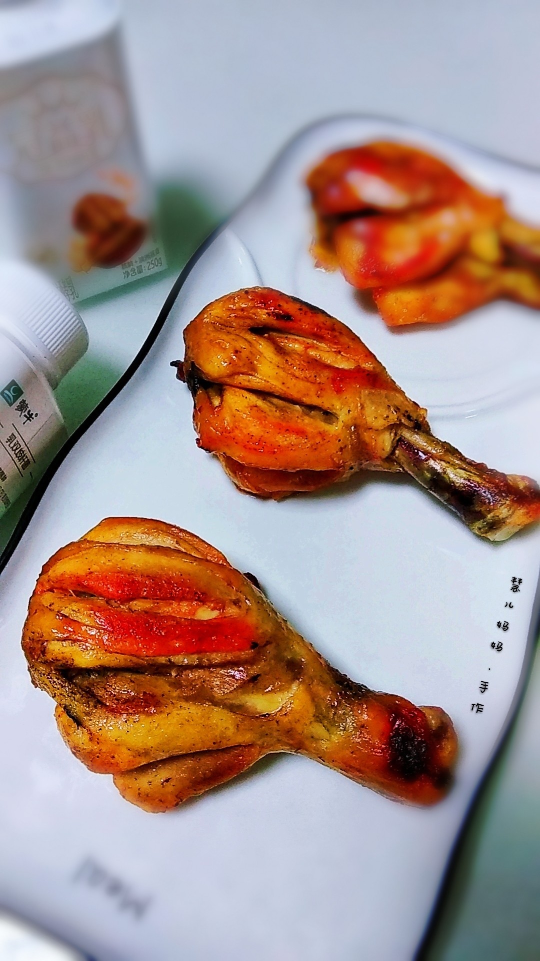 诱人的蜜汁鸡腿和孜然烤肉。把肉多烤了一会儿,非常好吃。