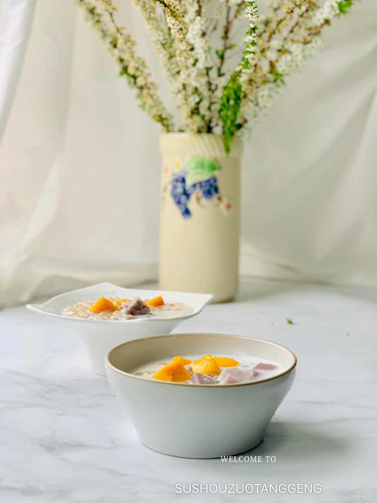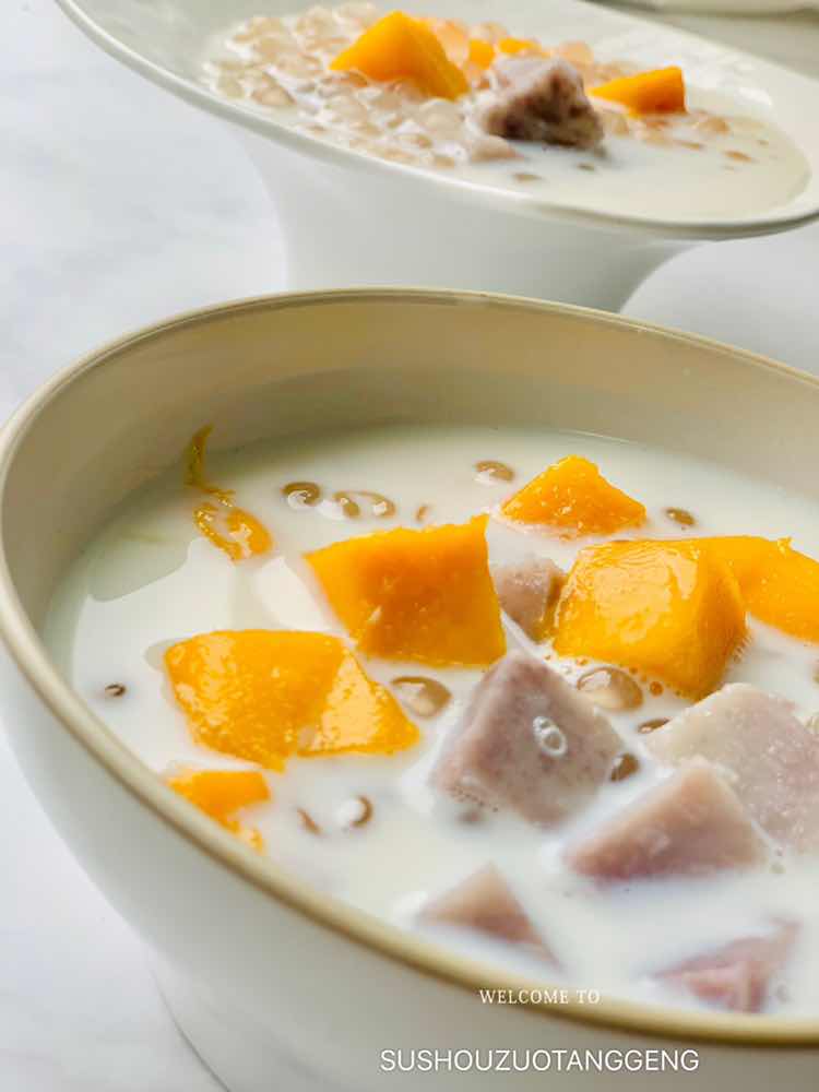 早 5.5 早 餐: 芒果芋头西米露 饼皮月饼 蔬菜坚果沙拉