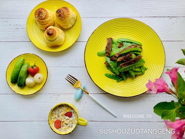 早 方向比努力重要 方法比力量重要 早餐:牛排荷兰豆 小餐包 牛奶麦片 水果