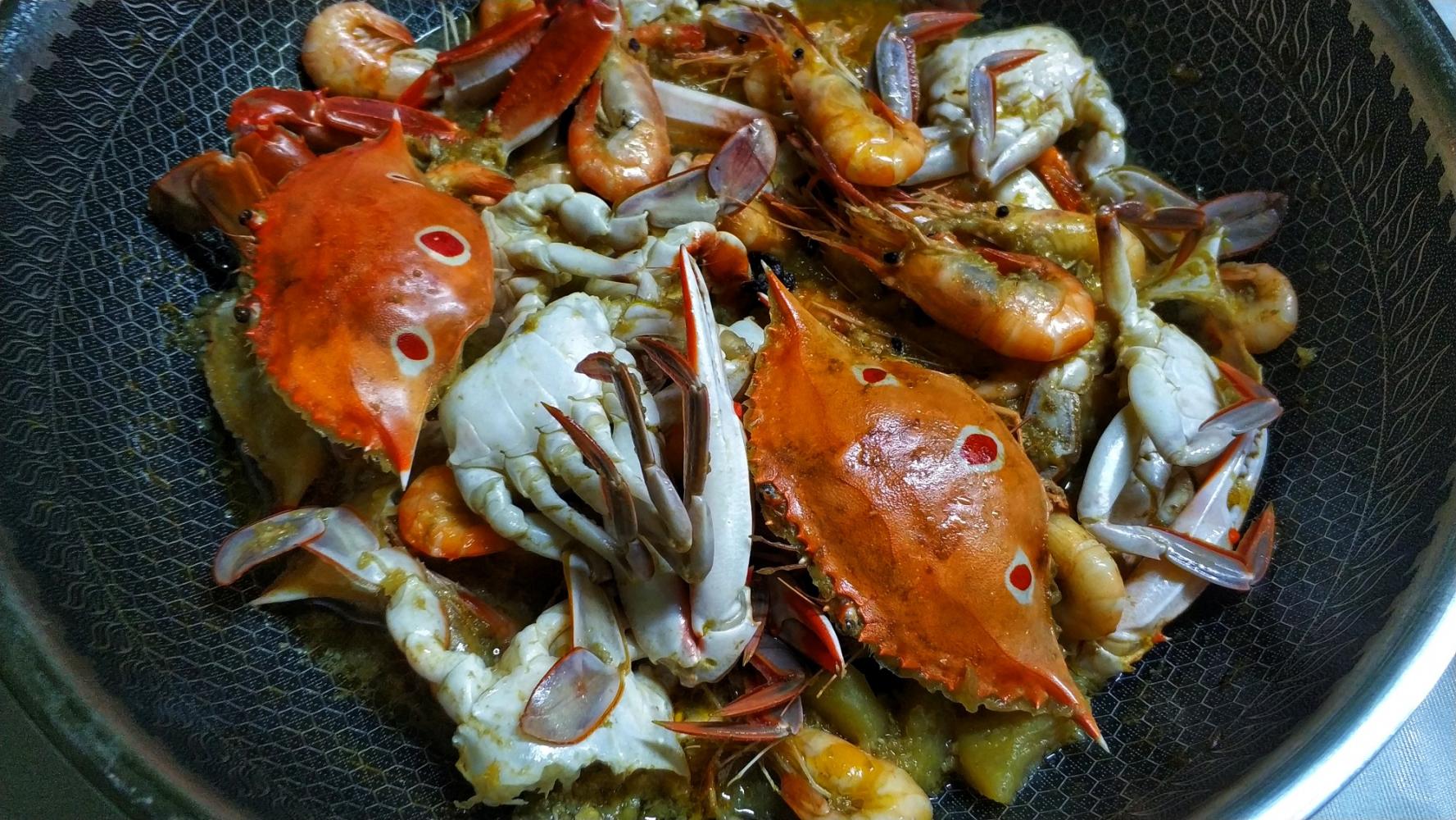 花蟹 虾 蒜 鱼露 糖 啤酒