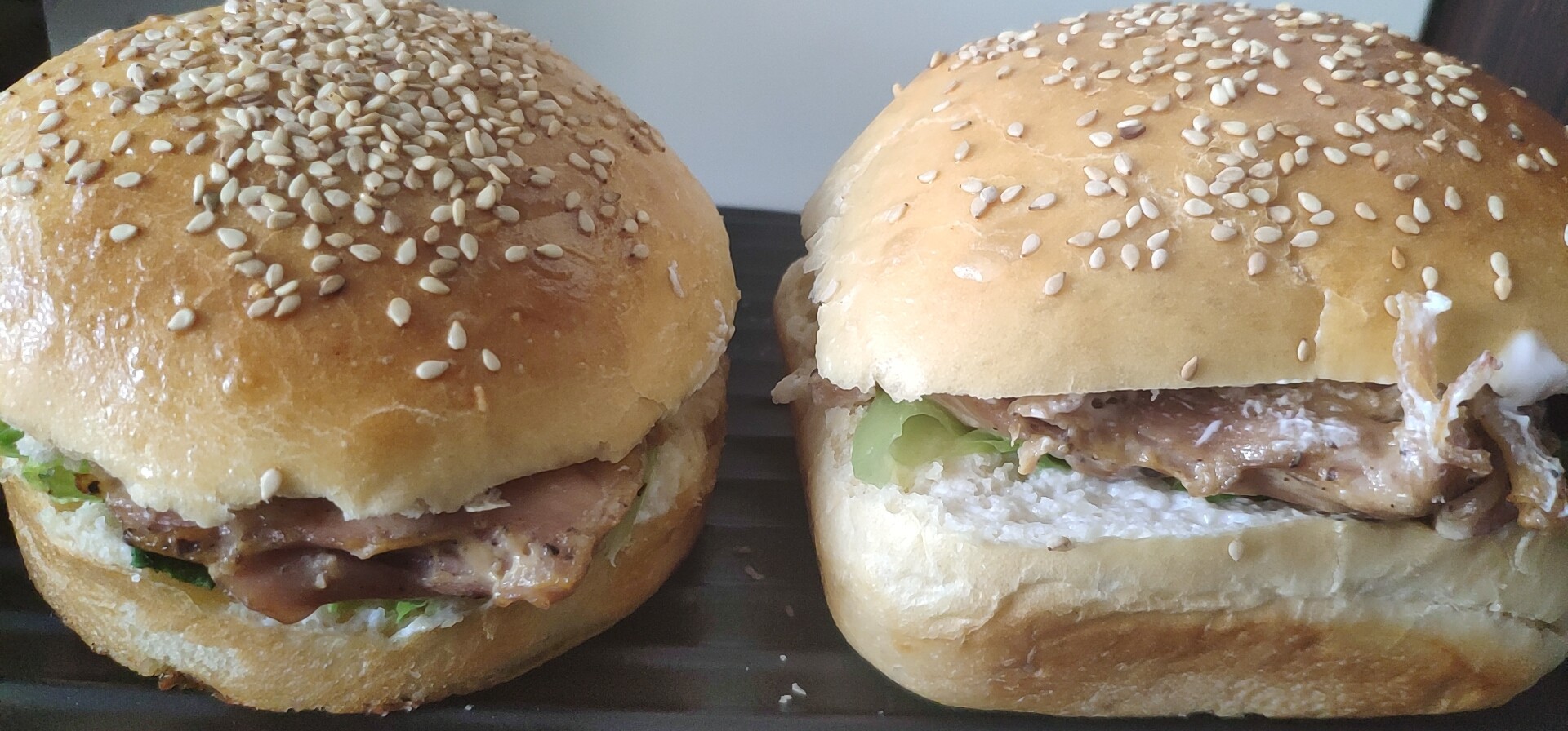 面包培都是用宠物专用的油做的不加黄油,中间生菜跟烤鸡腿肉都是宠物配方,中间涂了酸奶,我妹妹三口解决一个,鸡腿肉都是自己回家拆的。