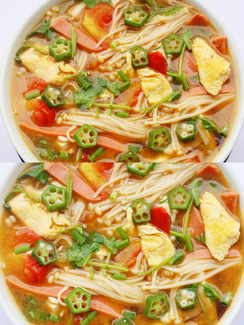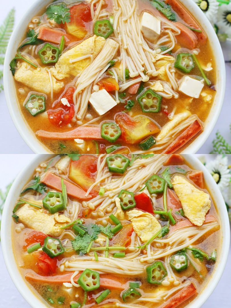 番茄菌菇豆腐汤,怎么做都好喝,赶紧来一大碗吧。