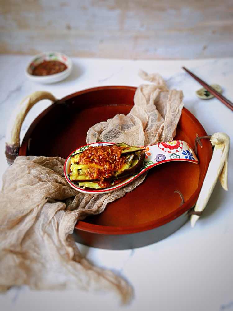蒜蓉手撕茄子,蒜香味儿十足,入口鲜香、爽口。