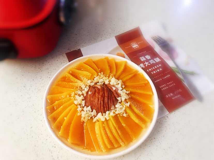 香浓南瓜鸡腿肉,太阳谷蒜香鸡腿肉,好吃唇齿留香。