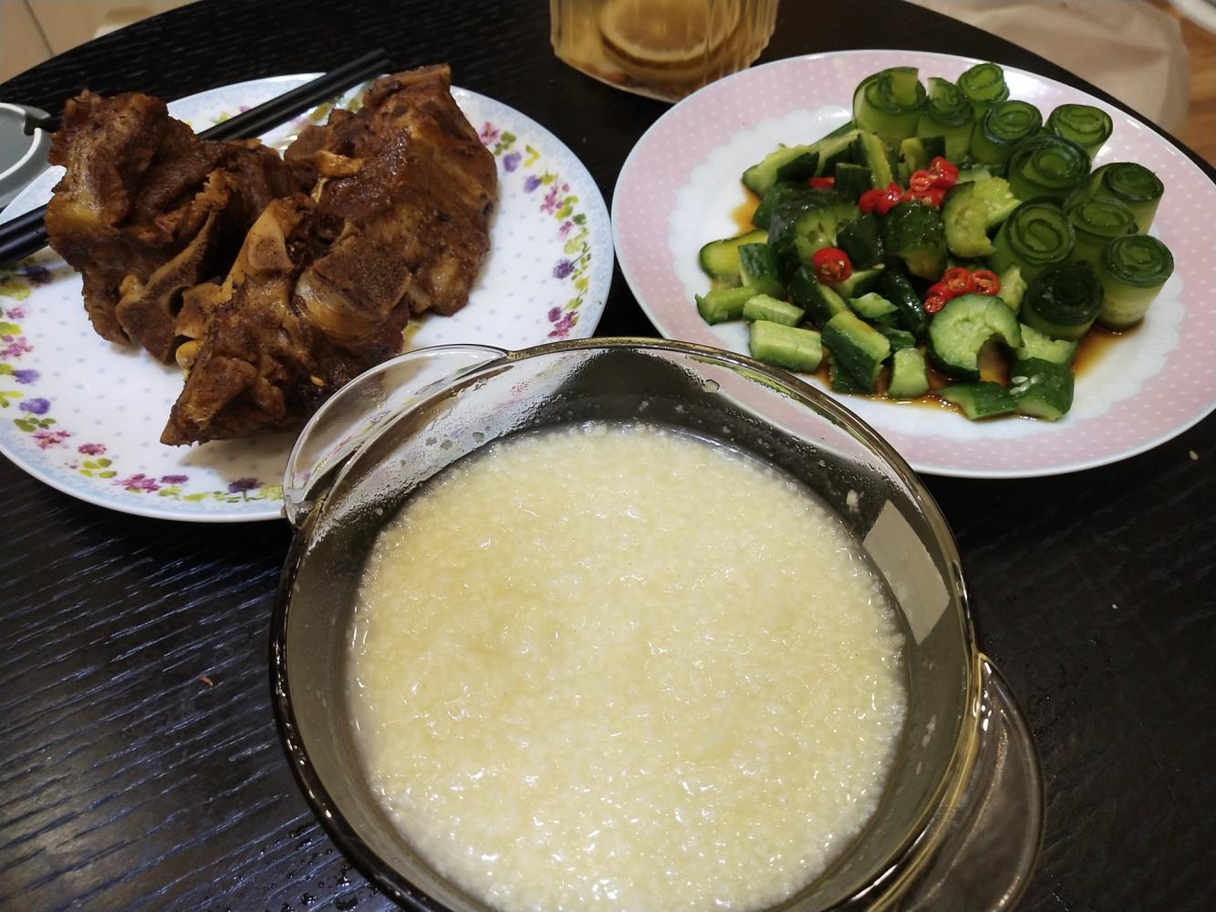 小米粥+黄瓜+酱骨头