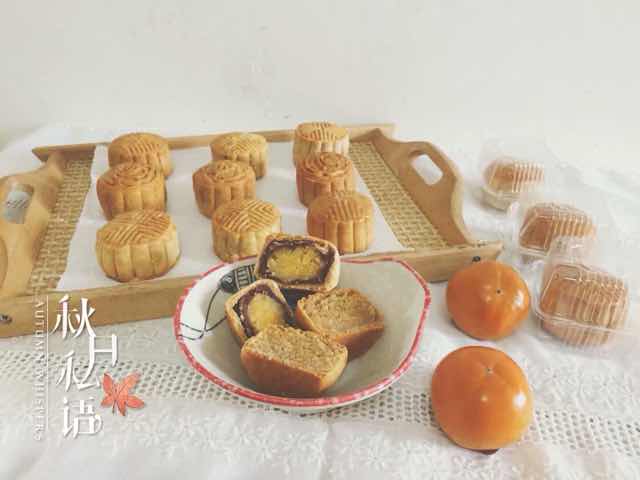 做了两种口味的月饼,奶黄牛肉松月饼和豆沙奶黄月饼。谢谢老师的教程。