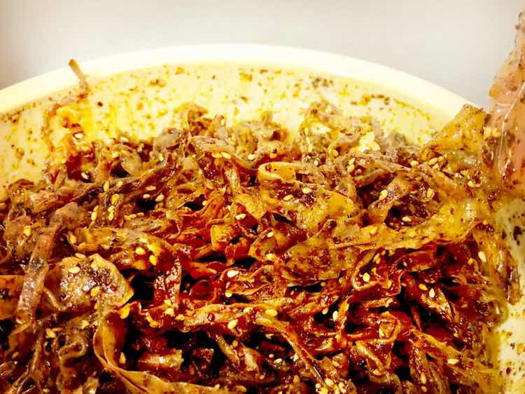 来交作业啦,特意研磨了二荆条辣椒面和花椒面来做辣条,总共300克豆皮放了40克二荆条和5克小米辣,香麻辣都有了,是我喜欢的层次感。豆皮炸的有点干,感觉明天吃会口感更好。