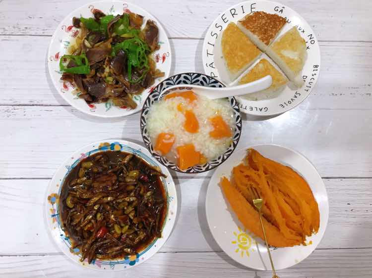 烤红薯,青椒鸭胗,咸鱼毛豆