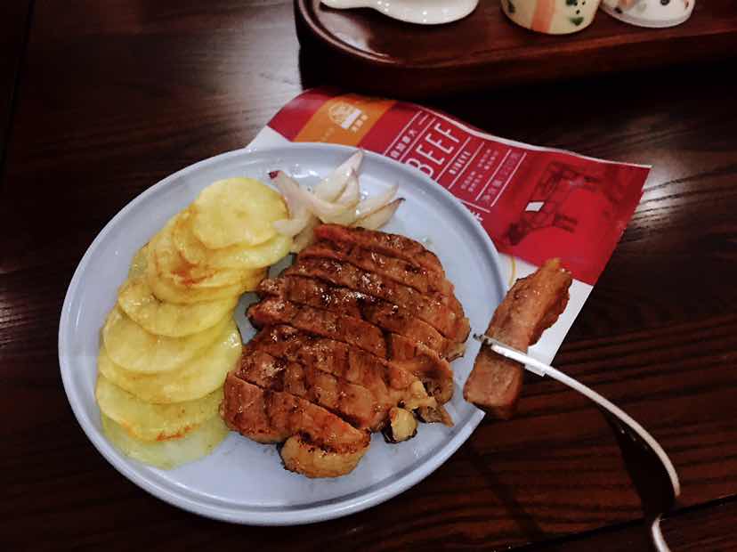 晚餐打卡 煎太阳谷牛排,7分熟味道太好吃了
