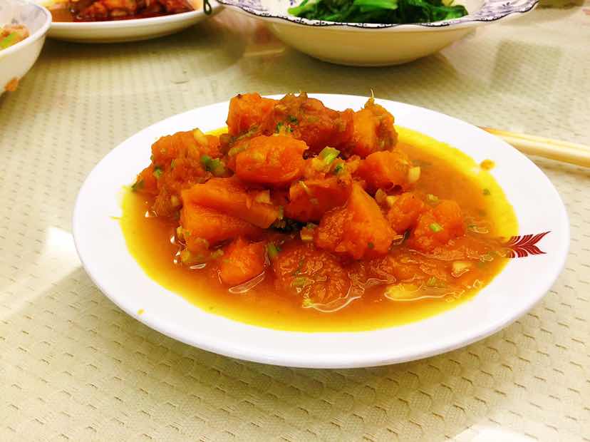 晚餐打卡, 太阳谷鸡胸肉 土豆丝烩鸡肉丝(抢拍照片,模糊了) 糖醋带鱼 酱香南瓜 青菜一盘