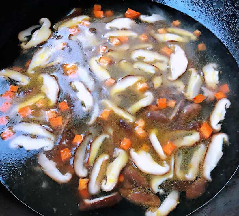 2香菇洗净去蒂在开水中焯水后立即放入冷水中过凉