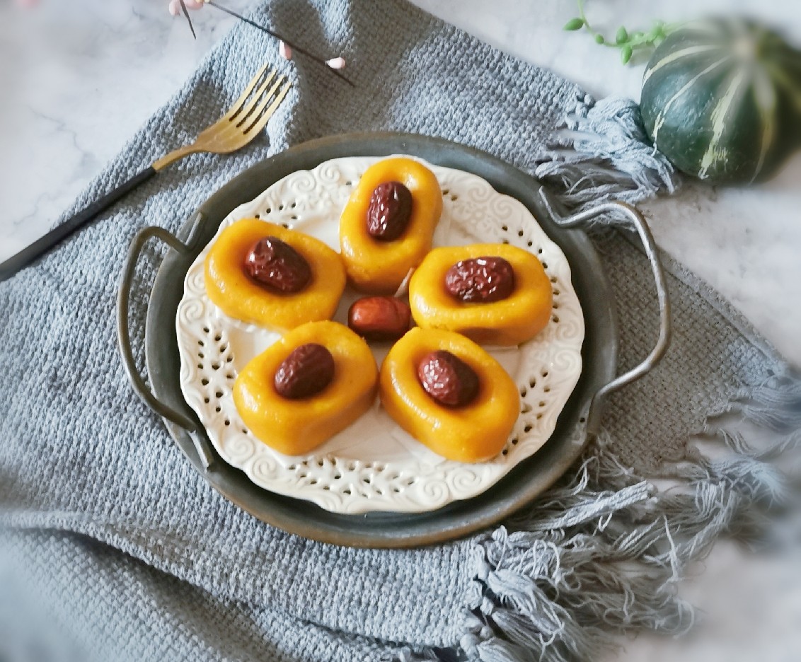 红枣和南瓜搭配做成糯米糕 清甜美味