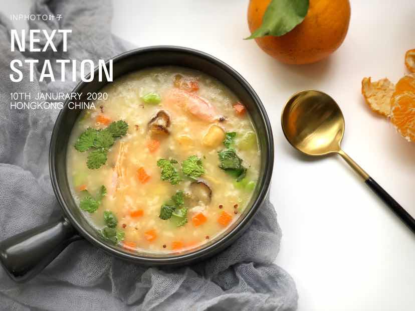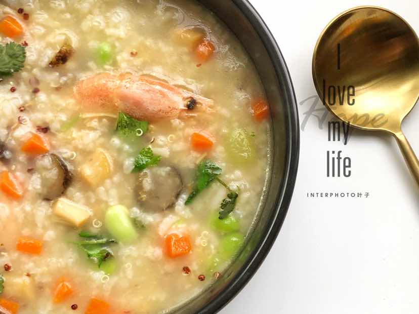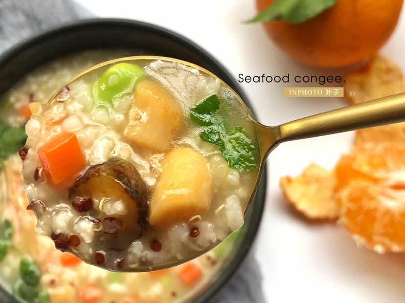 早餐打卡第天 娃们喜欢的海鲜粥 好久没烧了,大宝一看我拿出食材就知道我要做什么早餐了,一脸高兴的去晨读了[偷笑]小伙子正在长个的时候了,胃口那是相当给力的[强][呲牙][呲牙] 今日早餐:海鲜粥、春见粑粑柑