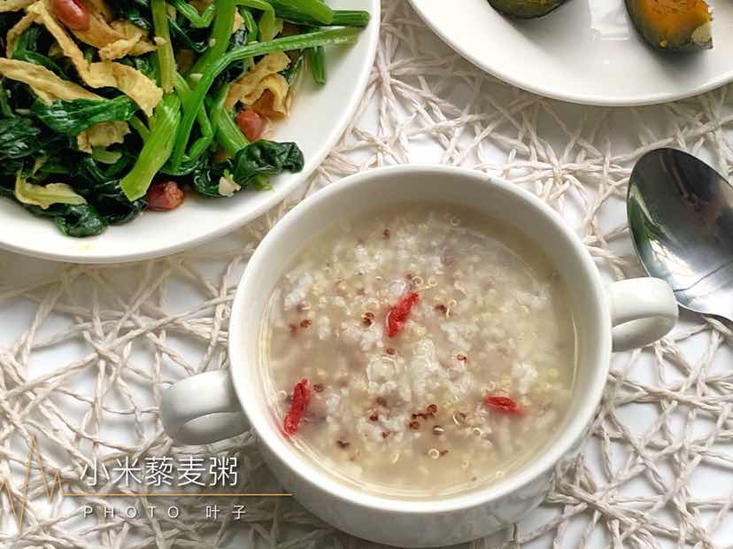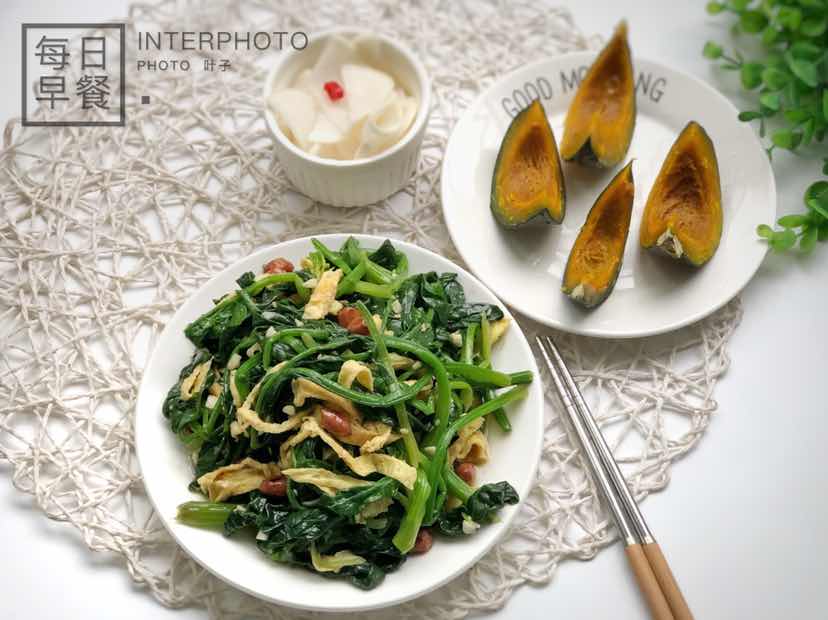 早餐打卡第天 每天都在期盼疫情早点过去 让一切早日恢复正常 俩娃在家的日子真是有点受不了了 一下好的像连体婴,一下又翻脸打架 所幸哥哥已经懂事很多,要不然每天不知道要上演多次“鸡飞狗跳”[捂脸][捂脸] 今日早餐:小米藜麦粥、凉拌菠菜、腌萝卜、蒸贝贝南瓜百香果